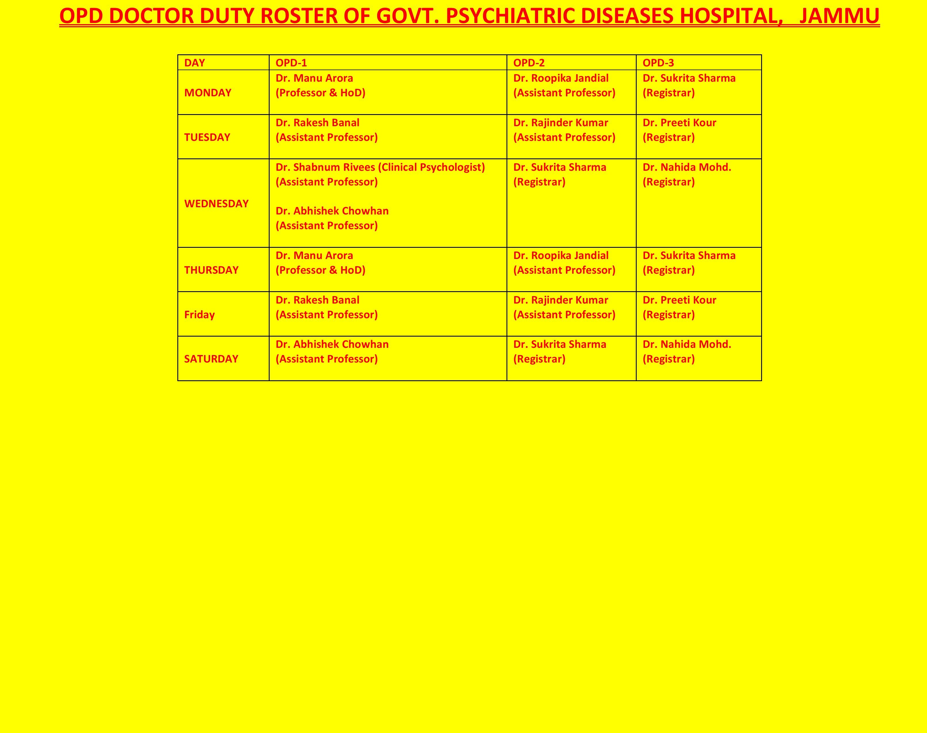 Dr. Palak Gupta (Registrar) Dr. Nancy Sharma (Registrar) Room No. 3 |